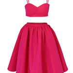 Confeccionado en tafetán fucsia —un tejido con cuerpo y un brillo espectacular—, es la elección perfecta para bodas, celebraciones, fiestas o cualquier ocasión especial en la que quieras destacar con sofisticación.