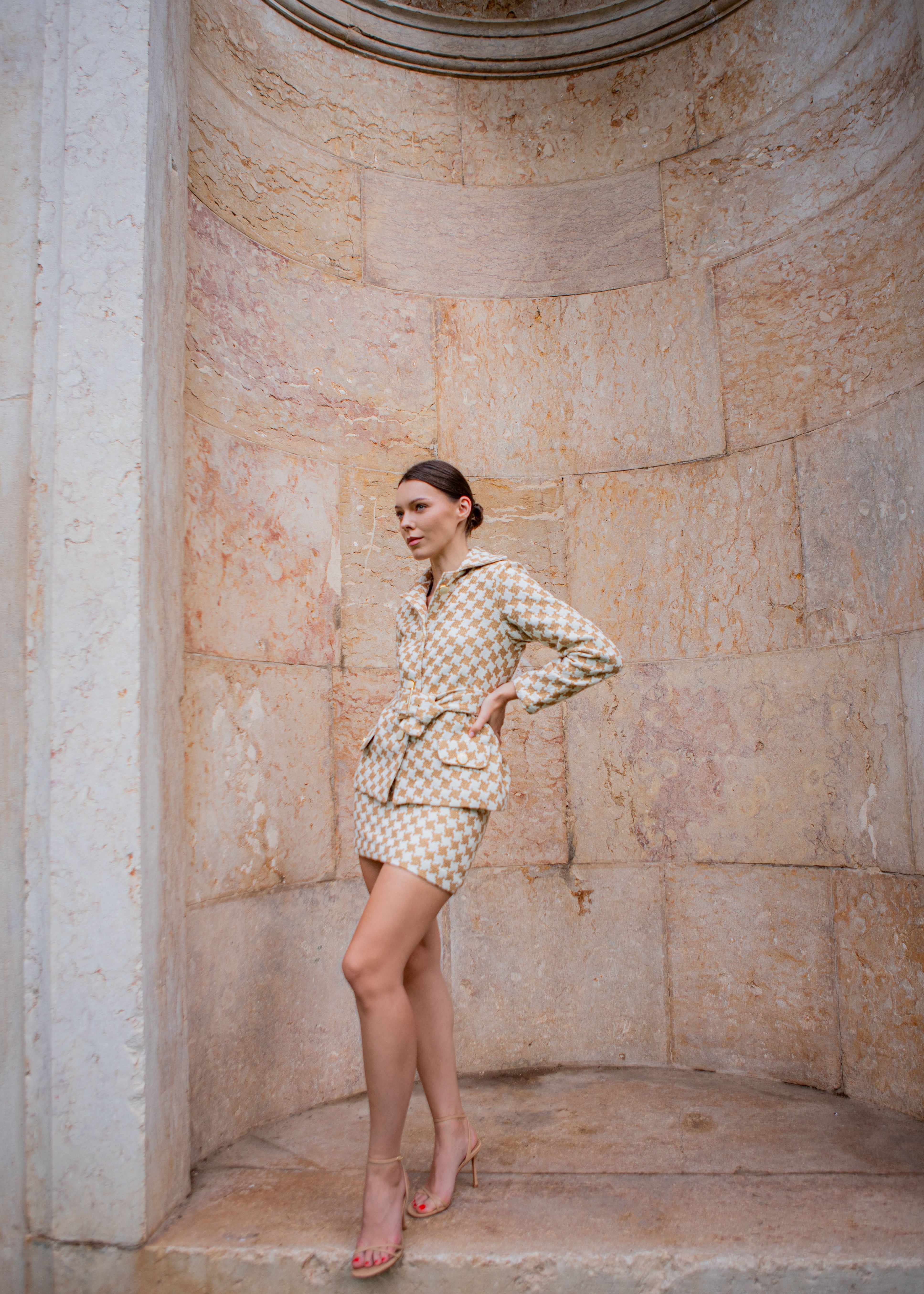 El conjunto Ornella fusiona la elegancia del tweed en un blazer con botones y cinturón con la frescura de una mini falda. Perfecto para cualquier ocasión, este conjunto te permite jugar con los complementos, dándole un aire más fashion o manteniendo un estilo clásico.