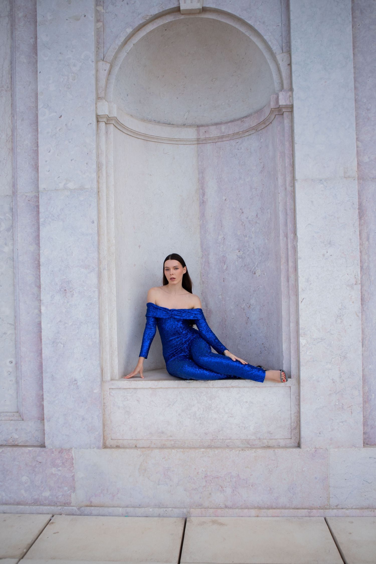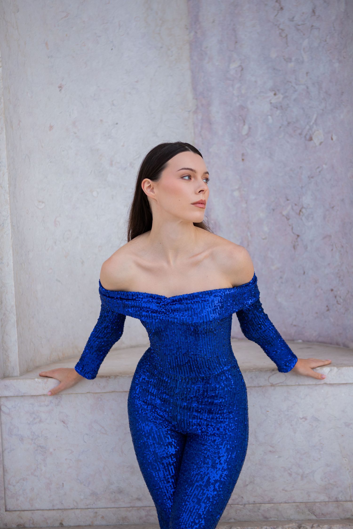 El mono Electra es perfecto para quienes desean destacar. Este diseño largo cuenta con un corte elegante y sexy, con hombros descubiertos y un cierre de cremallera en la parte trasera. Confeccionado en tela de lentejuelas con elastán, combina estilo y comodidad, asegurando que brilles en cada paso.