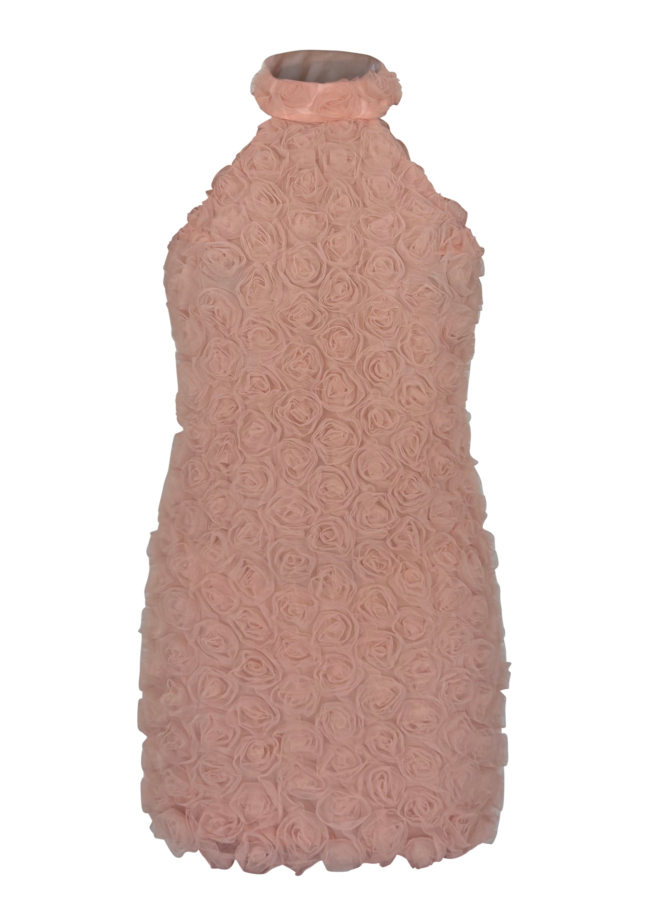 El icónico vestido Corina regresa en una nueva versión que eleva la elegancia a otro nivel. Este diseño de cóctel clásico y atemporal destaca por su exquisita tela con rosas en relieve en un delicado tono rosa pastel, creando un efecto femenino y sofisticado.