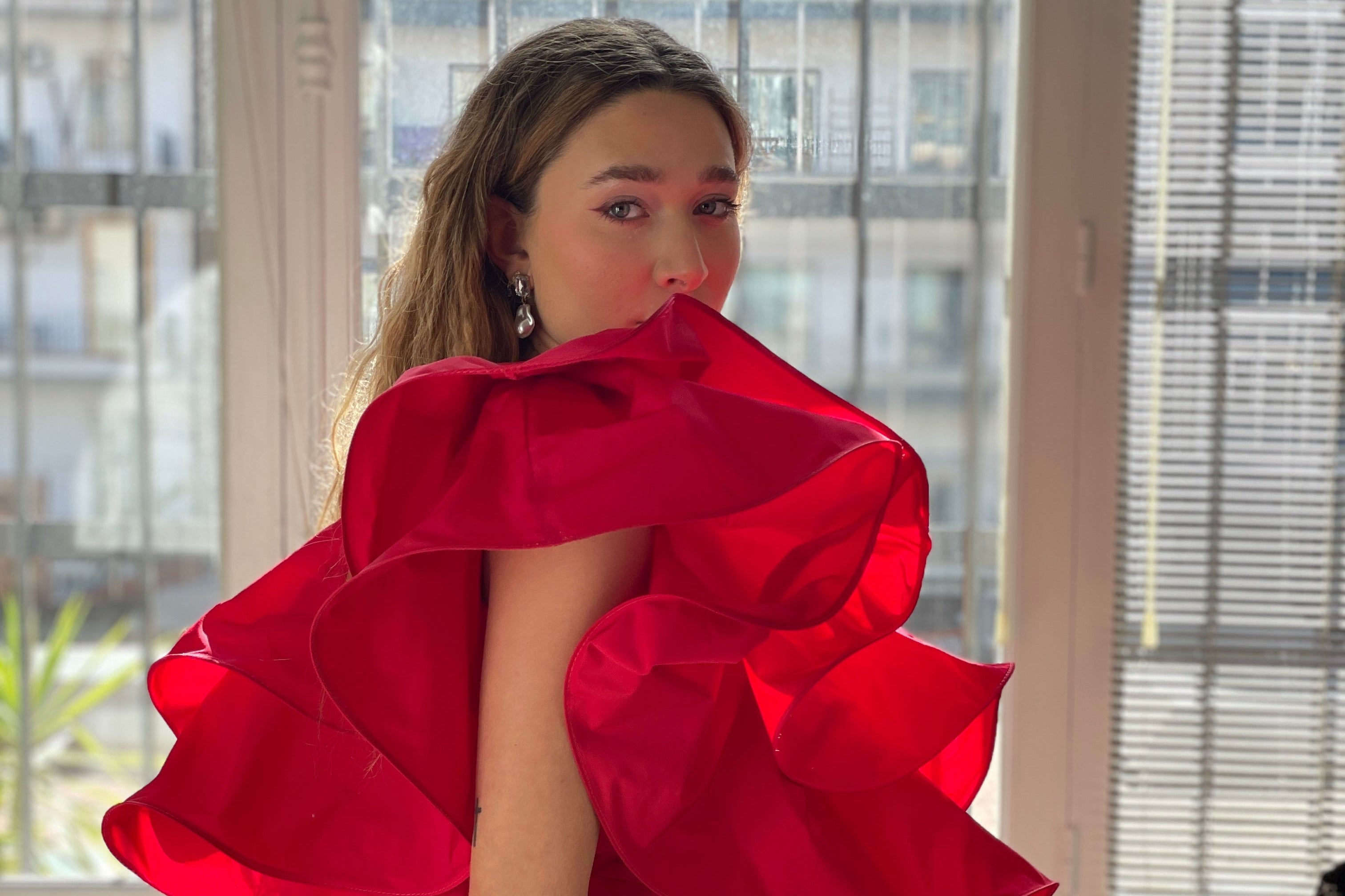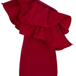 El vestido Mariella es pura elegancia en movimiento. Con una silueta asimétrica y una sola manga con volante vaporoso, esta pieza de coctel desprende sofisticación y modernidad en cada detalle.